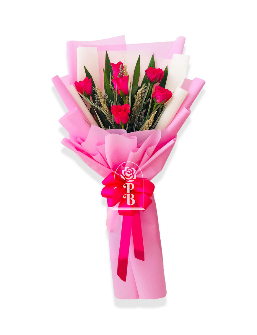 Bouquet of 6 Philippine roses, elegantly arranged with abaca fiber and non-woven fabric. Available in red, white and pink.